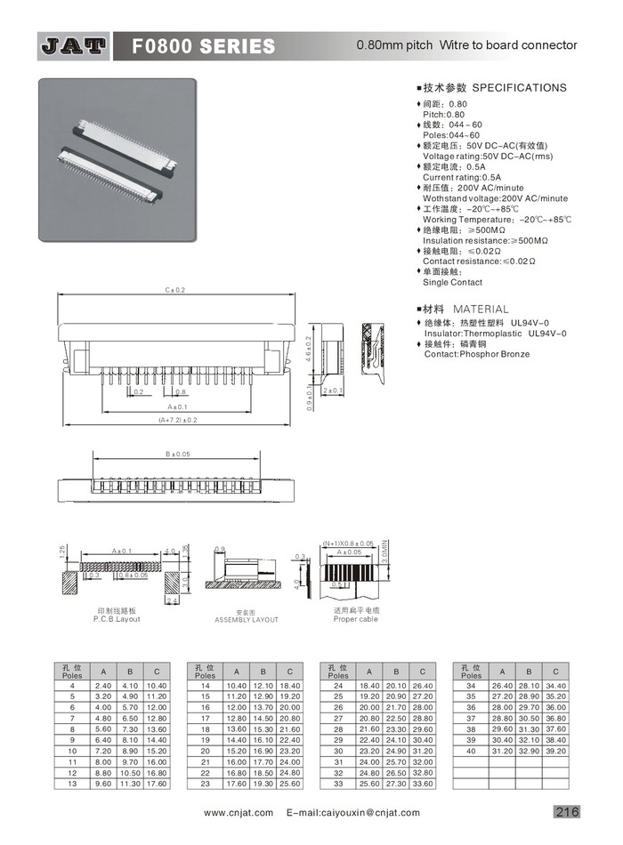 •  F0800 0.08係類(lèi)貼片連接器