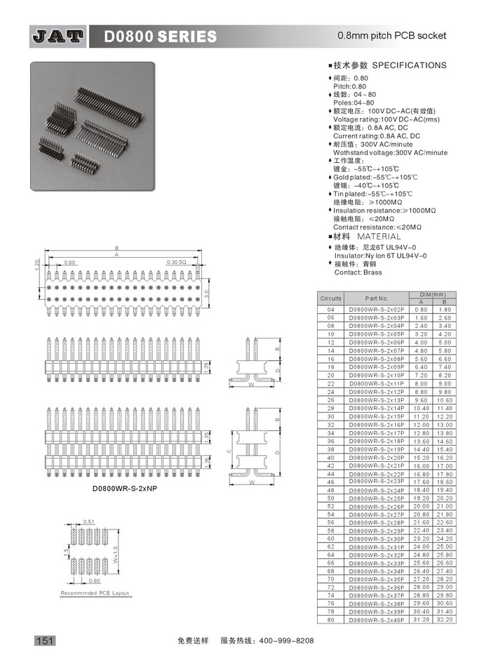 D0800 PIN HEADER連接器