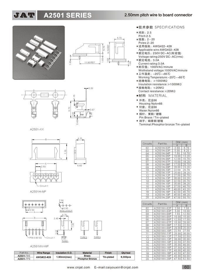•   JST XH/YH連接器 A2501