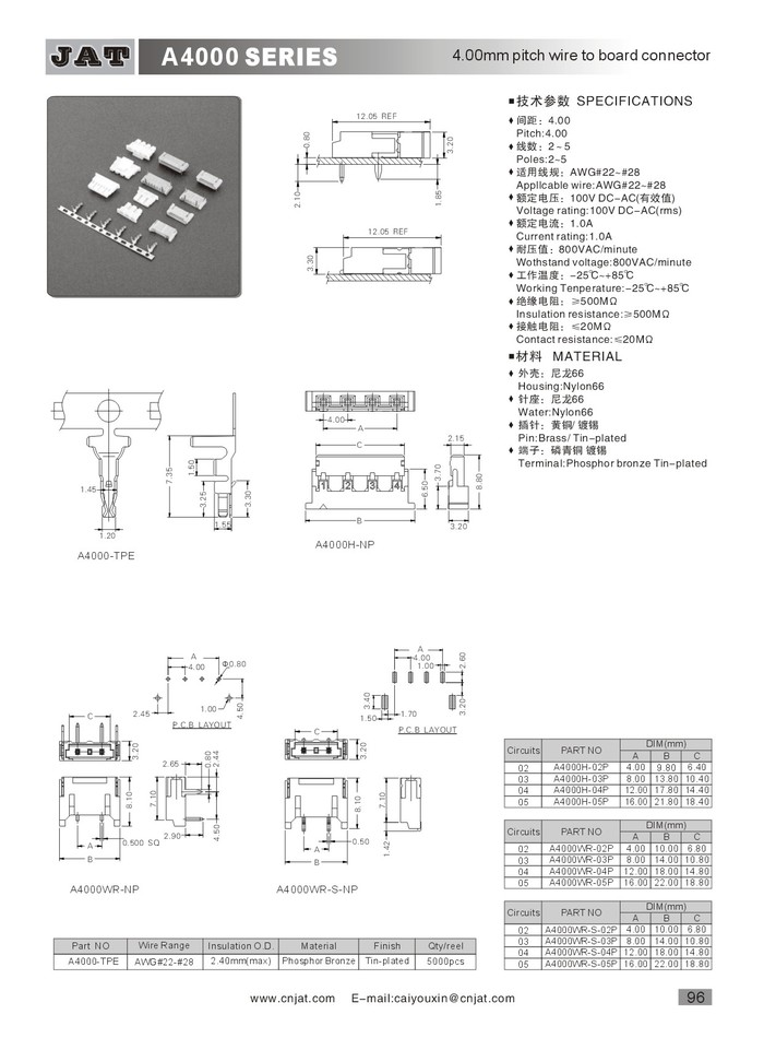 •  JST BH高壓插座 A4000