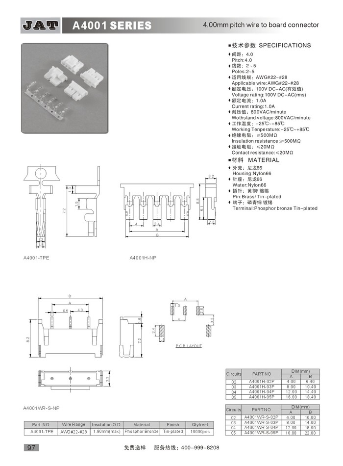 JST BH連接器 A4001