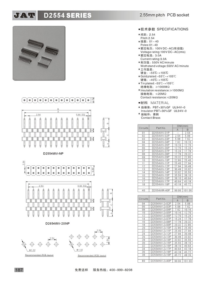 •  PIN Header 2.54排針 D2554