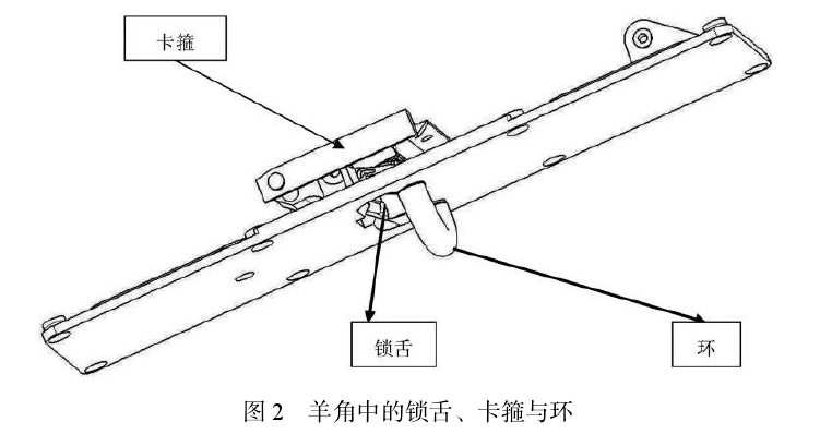對接故障發(fā)生的頻率雖(suī)然低,但一(yī)旦發生就很難排除,隻能拆解更換高(gāo)壓連接器的羊角,以重新驗證。高壓連(lián)接器對接故障直接(jiē)表現為:2個高壓連(lián)接器分開時羊角上的鎖舌沒有打開,導致下次閉合時羊(yáng)角上的(de)環(huán)無法插人鎖中,發生故障。目前,解決(jué)故障(zhàng)的方(fāng)法(fǎ)為:將高壓連接器的羊角拆解,對照圖紙檢查(chá)每個部件找出問題部件,更換後重新組裝。多次拆(chāi)解總結找出了發生變形的部件是羊角中的卡箍,但(dàn)由於(yú)卡箍(gū)與羊角中的其他零件組成了一個複雜的四連軸(zhóu)結構,現場無法進行定量、定性分析(xī)。羊角中的鎖舌、卡箍與環如圖2所示