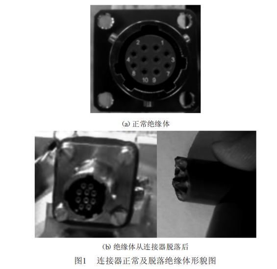 以某圓(yuán)形電(diàn)連接器在機電作動器上的應用(yòng)為背景,電連接器要跟隨機電作動器承受多種振動、衝擊、運輸等力學環境的考核,原則上電連(lián)接器應能承受機電作動器的振動、衝擊、運輸等力學環境而不(bú)發生機械(xiè)損壞(huài)現(xiàn)象,在(zài)實際試驗過程(chéng)中,發現圓形(xíng)連接器芯部(bù)絕緣體脫落。